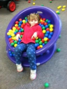 Allyson is a typical little girl. She likes to dress up, help in the kitchen, and play outside. She just needs a little extra help. When she was 18 months old, she got meningitis which resulted in an extended hospitalization. She was eventually flown to Seattle Children’s due to complications. She had 2 strokes, resulting in oral aphasia, difficulty swallowing, and difficulty using her arms and legs. When she finally returned home, she had to relearn to sit up and walk. Her balance and postural control is still poor but is improving a little at a time. She is learning to eat again and has an n-g tube to give her extra nutrition. She is unable to speak and is learning to sign and use a communication book with pictures. She is able to use her right arm better than the left, but precision grasp and release are difficult, making eating with a utensil hard, as well as dressing, and drawing.