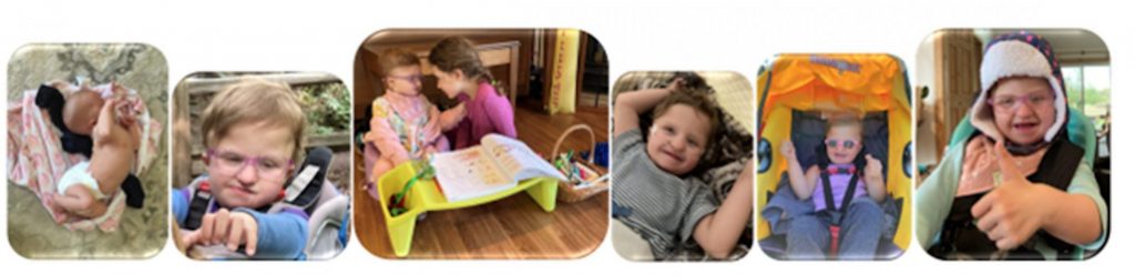 Overall, Amiyah’s development has progressed immensely! She has made amazing progress in all areas of her development. While playing on the floor, she is able to roll over for mobility and is able to ring sit on extended arms for a few minutes. She enjoys spending time on the floor on her belly or back, and she loves being able to move her body independently while playing! She absolutely loves movement and is very active with her family while hiking when positioned in a backpack, going on nature hikes in her adaptive jogging stroller, playing with her siblings while in her suspended swing, and playing with toys while seated in one of her adaptive chairs.