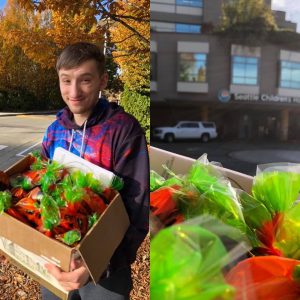 Pictured here is that same son of mine holding goodie bags for patients that were unable to knock on doors on his favorite childhood holiday and go trick-or-treating.  When he handed the secretary in the Volunteers Office the box full of goodies, he glowed with pride.  Upon exiting the hospital, he stopped me.  “Mom, thank you.  That was amazing.  Thanks for letting me give back.”  The journey isn’t over.  I’m definitely not alone.  There will always be a need, and as Elks, we all have an opportunity to participate in giving back to our community.