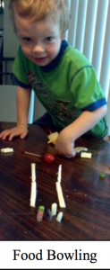 Therapy consisted of the construction of many “veggiemobiles”, playing game-show style games such as “Will it Crunch?”, and his mom’s favorite, food bowling.