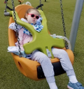 We are now three years into this journey and thanks to our Elks Therapist; Persephone is making amazing strides at getting better. She now has a specialized communication computer called a Tobii Dynavox. With this system, she will be able to use her eye gaze to communicate with us and tell us her needs and wants beyond a simple yes or no. Persephone has started Kindergarten and is adjusting well to being around the other kids. We are extremely excited for what the future holds for her. She even attends water therapy where she is able to move some of her muscles as gravity is eliminated when she is in the water.