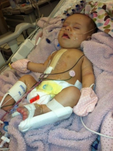 We were told she may only live to be one to two years old and surgery could be fatal. Most parents choose the comfort method where they simply love their child until she passes away. Or we could choose surgery which may or may not give her a longer life. We chose surgery to give her every fighting chance! There are only a few surgeons that will touch Rhyann’s heart and that is why we will be going back and forth to Boston Children’s Hospital to have all of Rhyann’s surgeries. Our local hospital is unable to perform the surgery Rhyann would need to live. So far she has had two surgeries. Her first heart surgery was a pulmonary band placed on her pulmonary artery to help slow the blood flow getting to her lungs. Her next surgery was a g-tube to help her gain weight and grow as we where told she would not grow very much. Her next surgery will hopefully not be for a while.